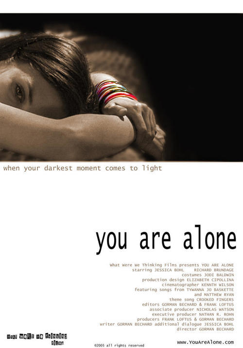 "We're gonna play a game of Snap! Pick a bracelet. Pull it hard!" But it's a game of desperate consequences in YOU ARE ALONE, a dark exploration of just how far a man and a woman will go to escape loneliness, if only for an hour. Daphne, a Yale-bound high school senior whose depression has blurred her sense of reality, works as an escort, advertising her services online. Her next door neighbor catches her as the "entertainment" at his nephew's bachelor party. With her hidden life precariously hanging in the balance, Daphne agrees to spend one hour with her neighbor. Initially confrontational, Daphne and her neighbor begin to shed their bitter layers of personal disappointment and general cynicism by talking about sex.