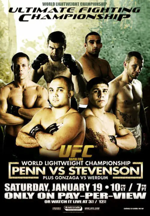 UFC 80: Rapid Fire was a mixed martial arts (MMA) event held by the Ultimate Fighting Championship (UFC), that took place on January 19, 2008 at the Metro Radio Arena in Newcastle, England. Sean Sherk was originally slated to fight but tested positive for steroids. With the lightweight championship vacated, the Penn-Stevenson bout was altered to be for the undisputed championship.